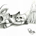 Diseño para tatuaje de calavera jugadora, a lápiz; foto tomada con el móvil, aumentado el contraste y con un filtro muy chulo llamado "pasión".