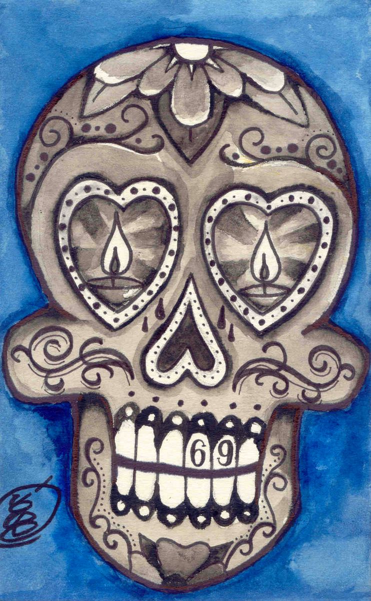 Sugar skull desing for a tattoo ,on a sheet 22 cm high by 12 cm wide, watercolor and black marker. It is one of a series I'm drawing and I will put more.